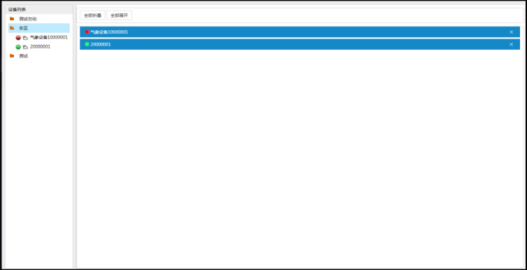監(jiān)控主頁顯示設(shè)備列表、大屏可視化、地圖展示等菜單信息。顯示土壤墑情、蟲情、氣象監(jiān)測圖標(biāo)及設(shè)備的運行狀態(tài)。